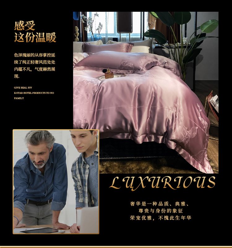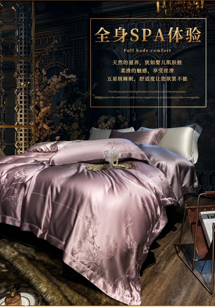 2023新款高端真丝床上用品奢华提花丝滑被套100%桑蚕丝纯棉四件套