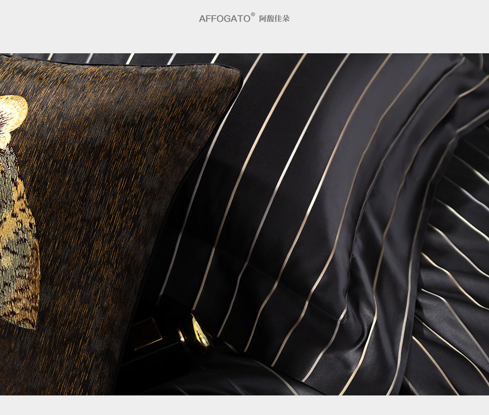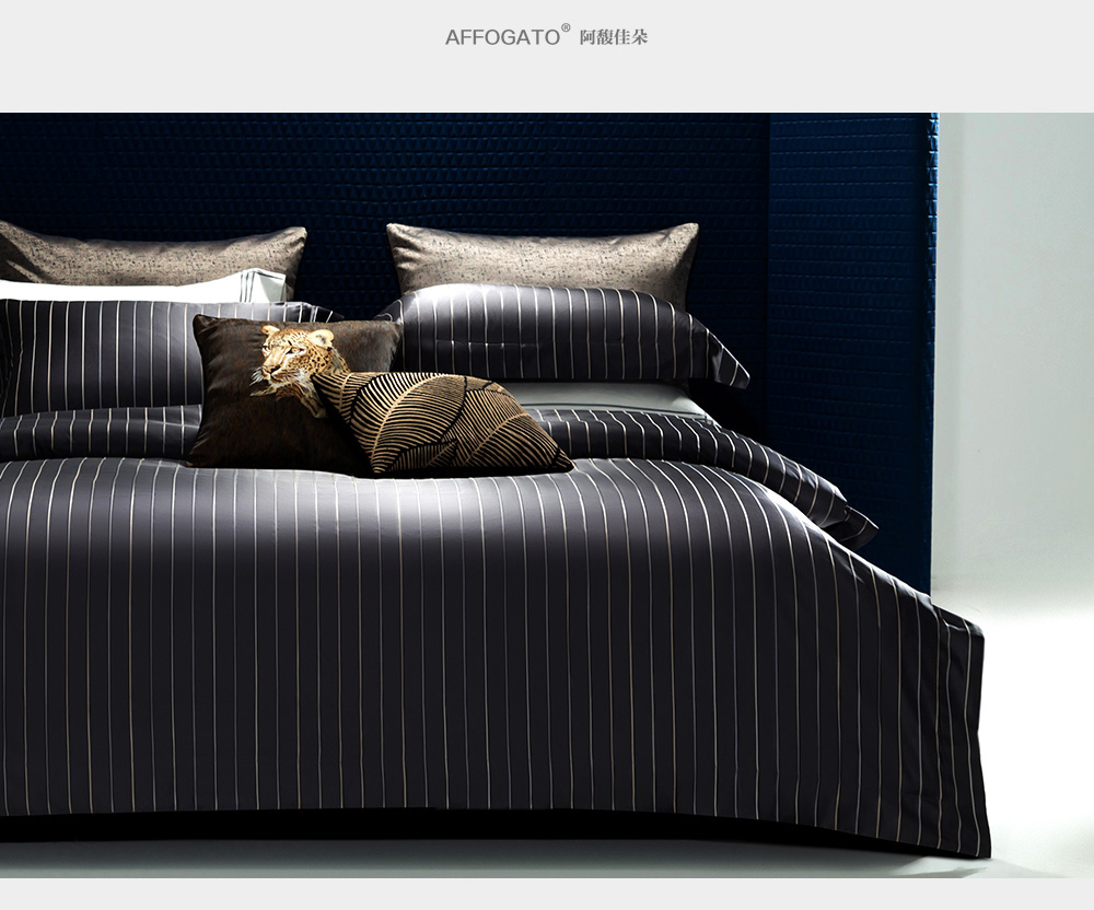 花时间生活100支全棉四件套双股贡缎刺绣长绒棉撞色拼接印花床品
