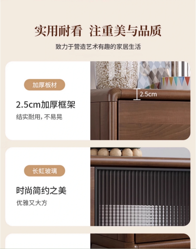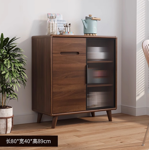 实木框餐边柜现代简约客厅酒柜茶水柜厨房储物柜橱柜收纳一体靠墙