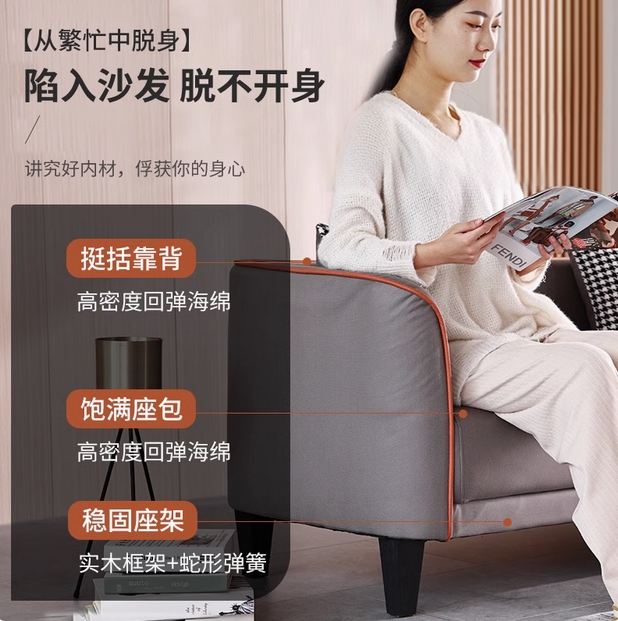 北欧简约现代布艺沙发小户型客厅双人出租房卧室公寓三人简易网红