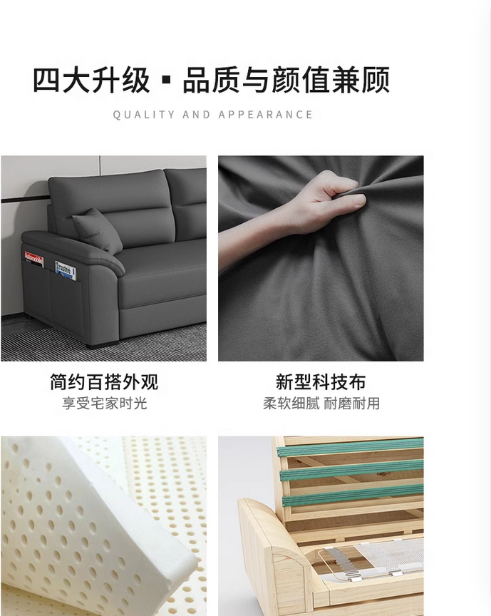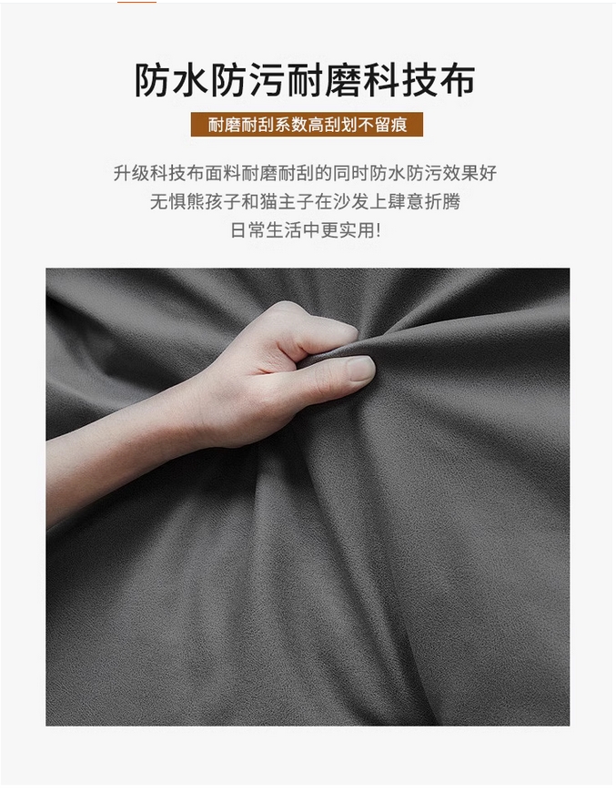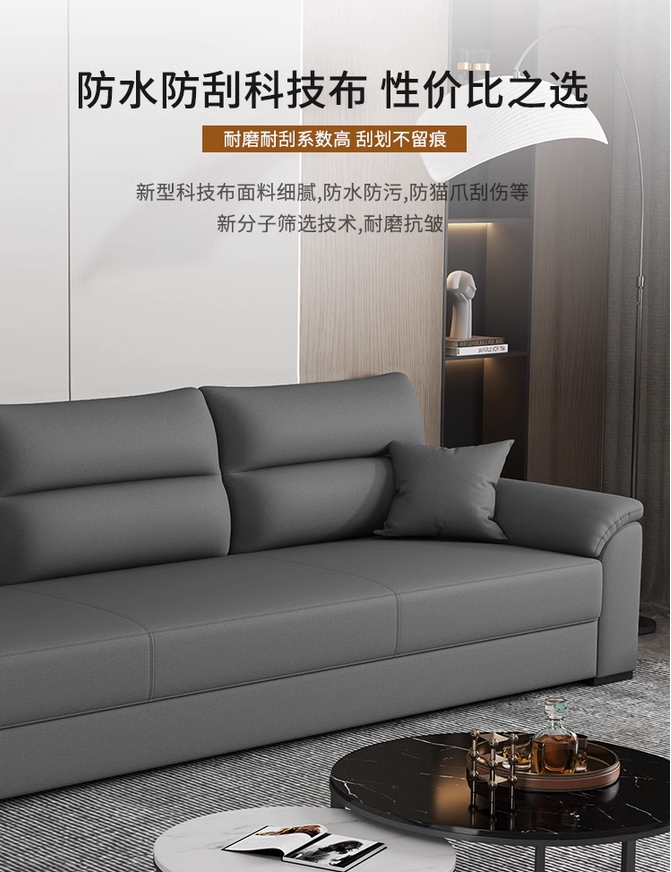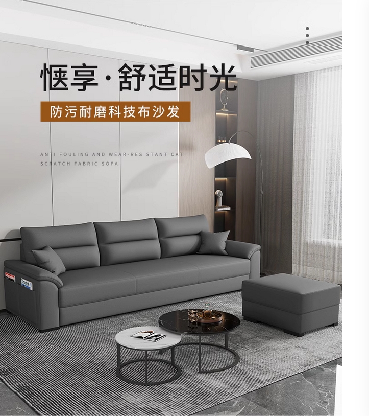 歌迪 极简风格 防水防污 健康环保 超柔科技布 实木框架 高密度海绵 浅灰色 脚踏