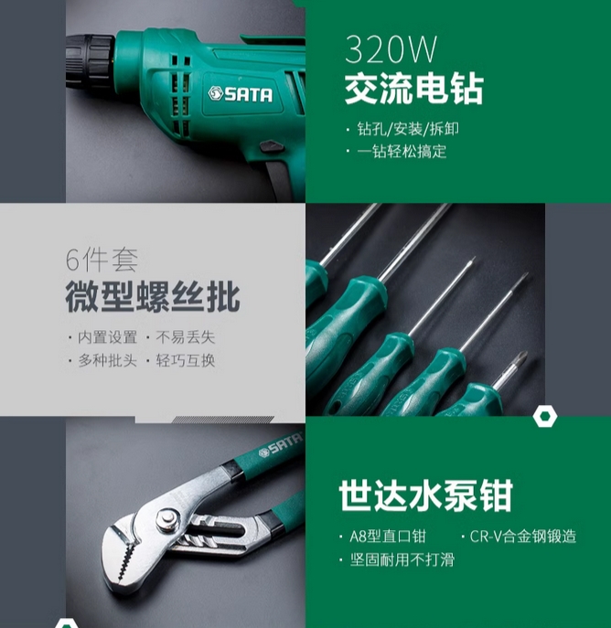 世达家用电钻套装手电钻电转电动手工具组合家庭维修五金工具箱
