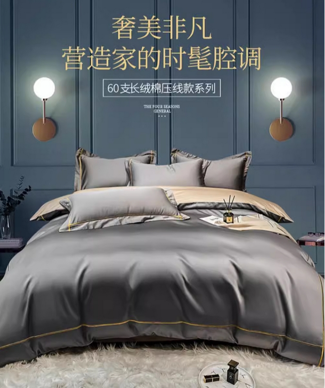 水星家纺四件套全棉纯棉抗菌套件贡缎被套床单家用床品23年新品