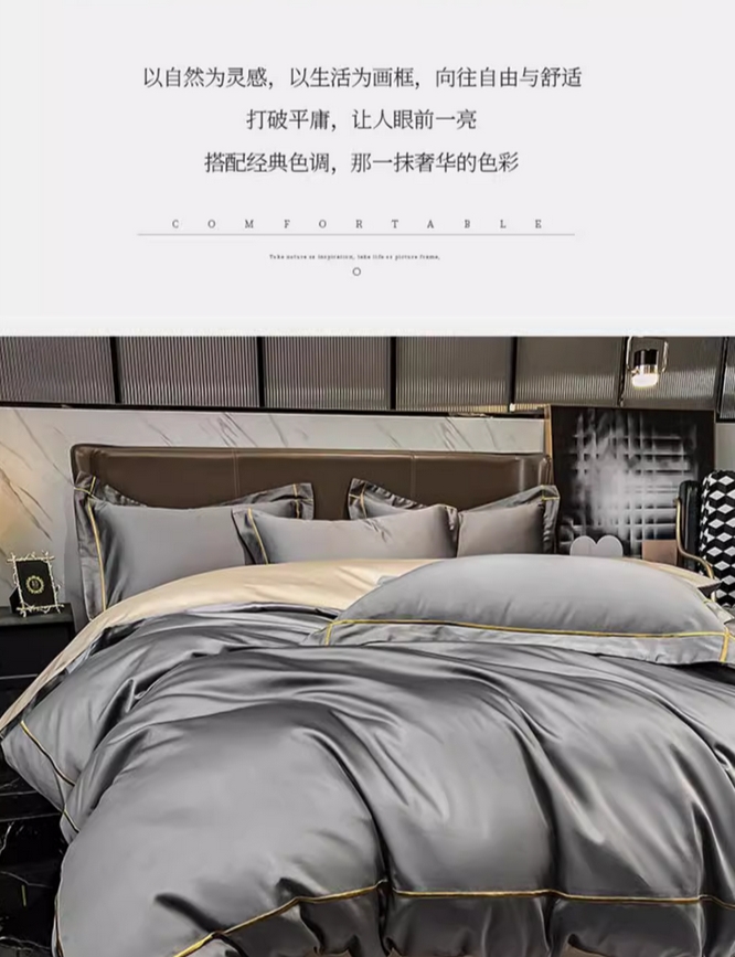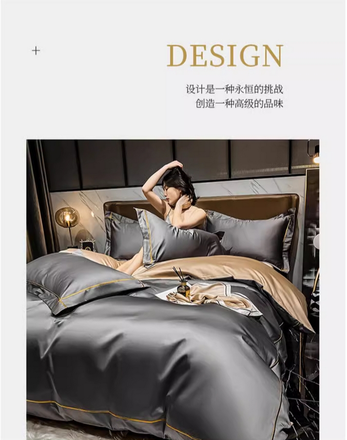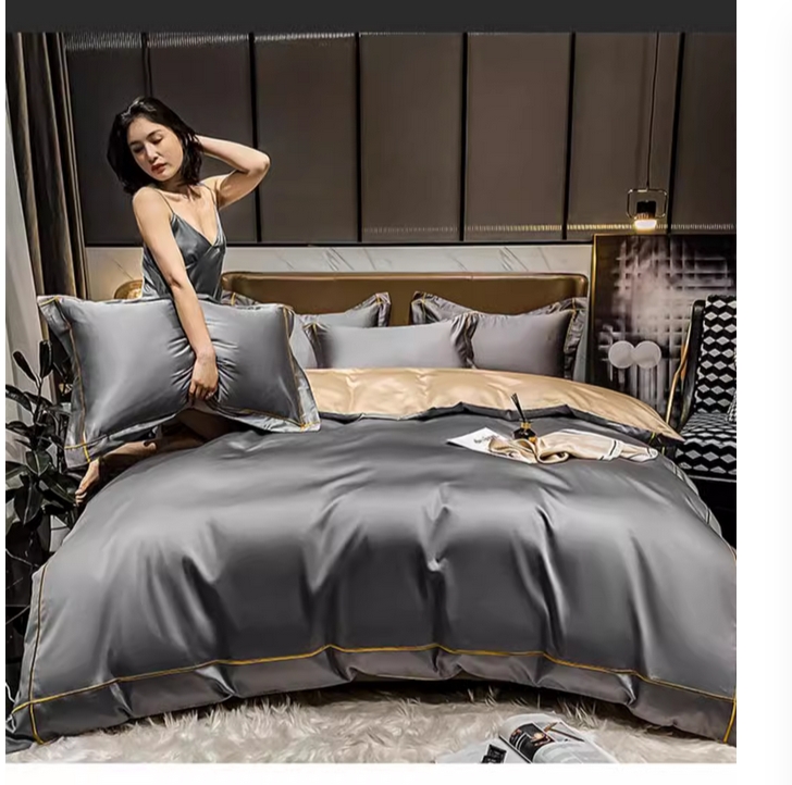 网红款双面冰丝床裙四件套丝滑简约公主风被套轻奢水洗真丝床罩夏