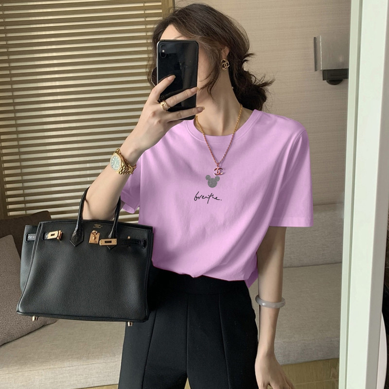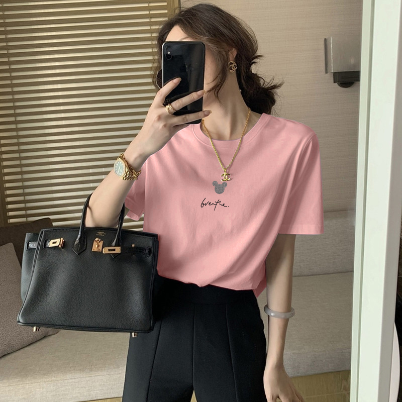 2023新款正肩纯棉短袖T恤女ins时尚百搭洋气减龄显瘦上衣夏季薄款