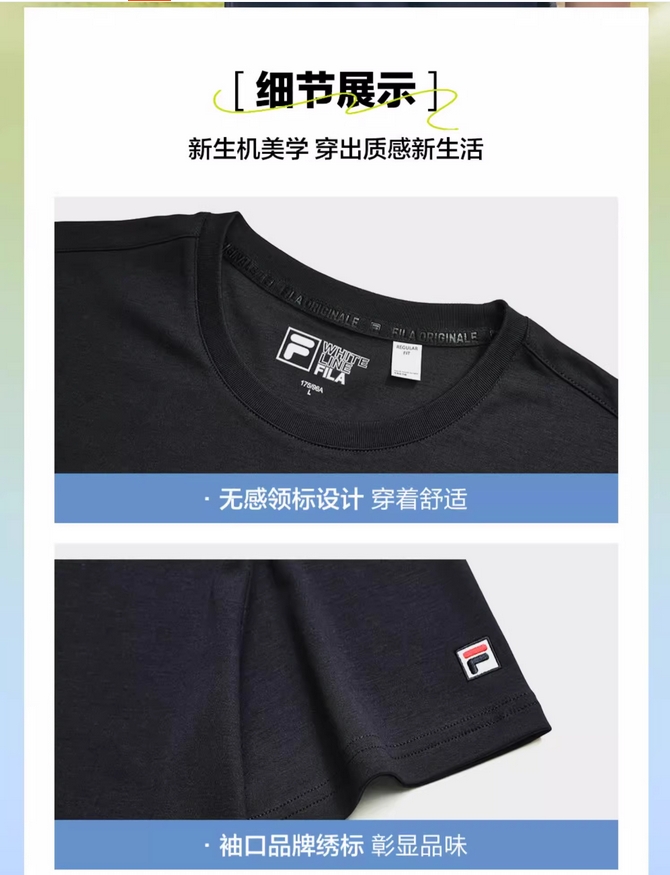 FILA斐乐男子短袖T恤百搭春夏时尚休闲LOGO上衣套头衫内搭运动T恤