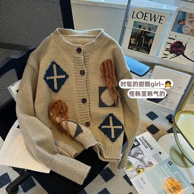 秋装搭配一整套时尚日系慵懒复古外穿毛衣女2023新款温柔针织开衫