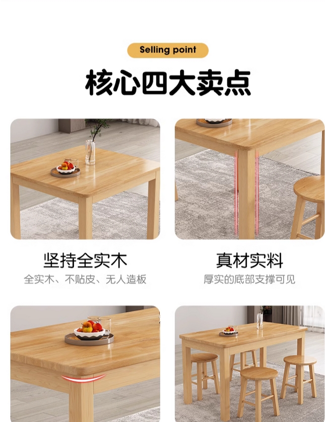 全实木快餐桌椅家用小户型面馆小吃店大排挡早餐桌椅组合长方形台