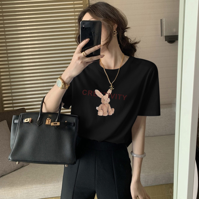 杏色纯棉爱心短袖t恤女2023夏季新款欧货纯棉宽松时尚正肩上衣潮